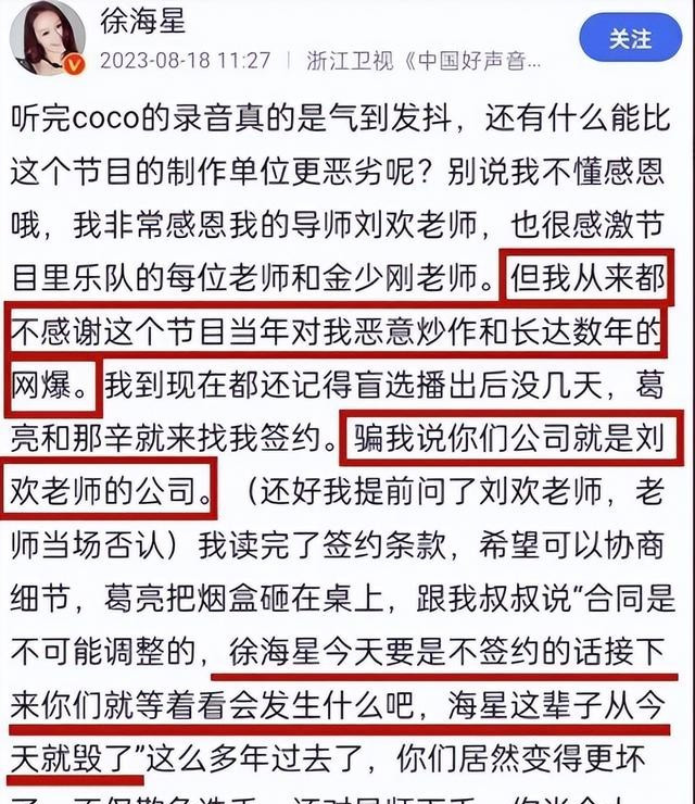 这事儿在网上闹得挺大的,好声音这节目被很多人给抵制了,背后投资的星空华文也跟着受影响。
