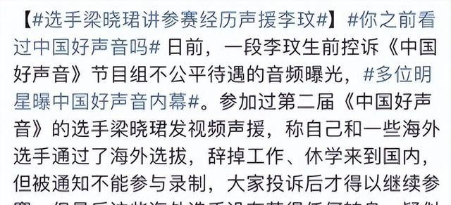 之前参加过《中国好声音》的李嘉捷,是首个公开发声的人。他写了一篇长长的文章,曝光了节目里存在的不公平对待和一些选手选拔的幕后操作。